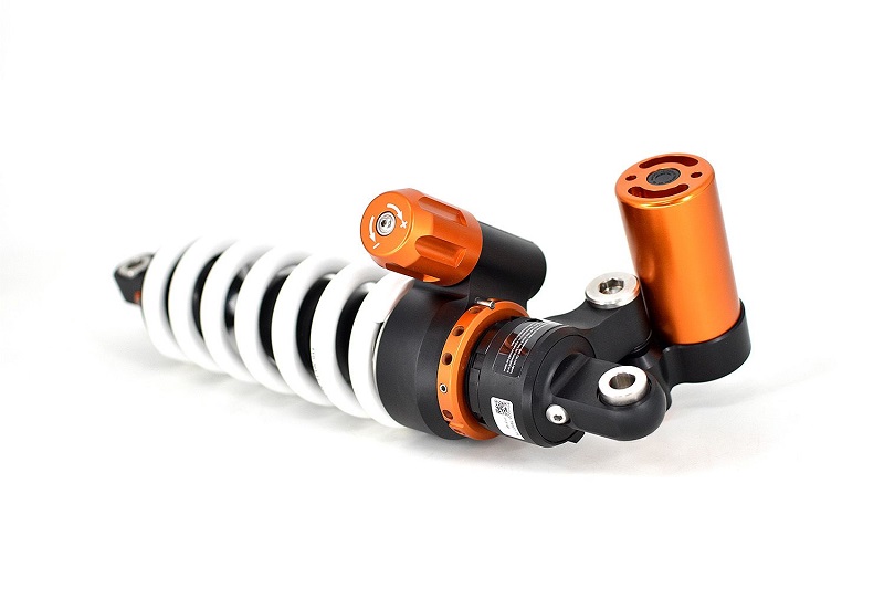 Ultimate performance shock absorber with adjustable rebound and high- and low-speed compression damping. Preload hydraulically adjustable for varying loads. PDSII anti bottoming.